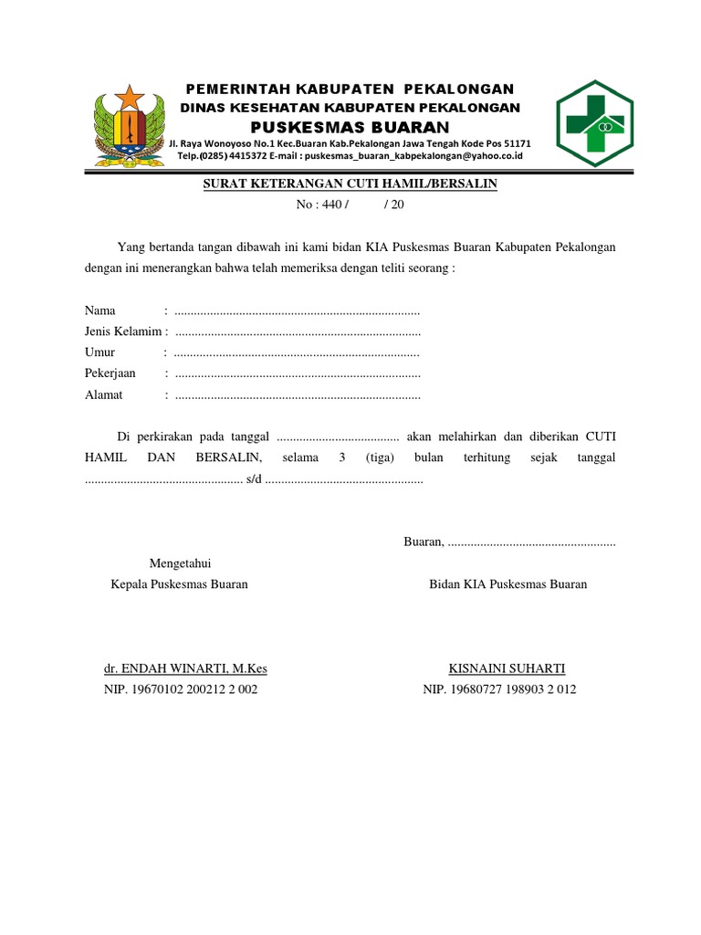 Surat permohonan izin cuti bersalin bagi pegawai negeri sipil harus dibuat dengan mematuhi format yang ada. Seorang pekerja perempuan berhak atas cuti hamilmelahirkan dan manfaat bersalin. Lama cuti melahirkan selama 3 bulan sesuai peraturan berdasarkan pasal 82 ayat 1 dan pasal 84 undang undang nomor 13 tahun 2003 tentang ketenagakerjaan bahwa pekerja karyawati berhak memperoleh istirahat atau cuti hamil selama 15 bulan sebelum melahirkan dan 15 tahun sesudah melahirkan. Seorang pagawai atau keryawan wanita memang sudah seharusnya jika sudah hamil dan mulai masuk waktu kelahiran bayi. Download contoh surat dokter. Untuk mereka yang bekerja di perusahaan swasta akan tergantung dengan peraturan perusahaan masing masing.