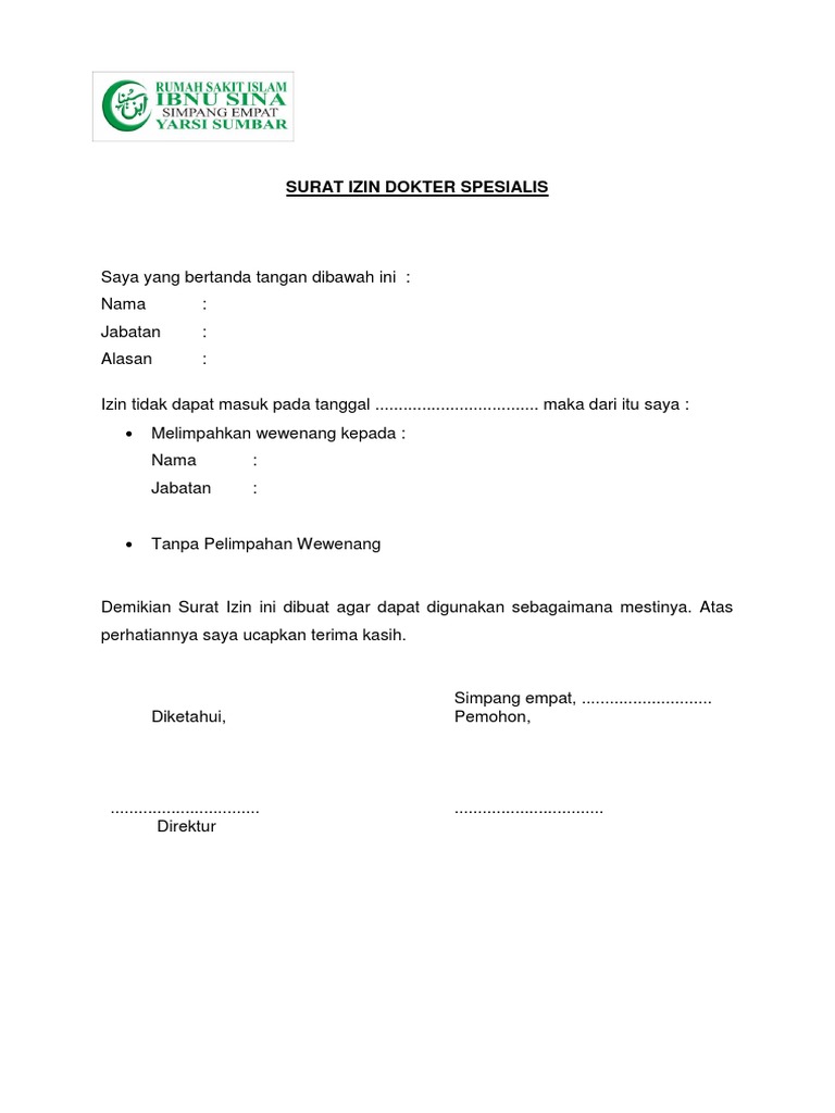 Contoh surat izin sakit tidak masuk kerja tanpa surat dokter. Biasanya seseorang yang sudah bekerja akan merasa kesulitan meminta izin apabila sakit dan tidak sempat ke dokter.