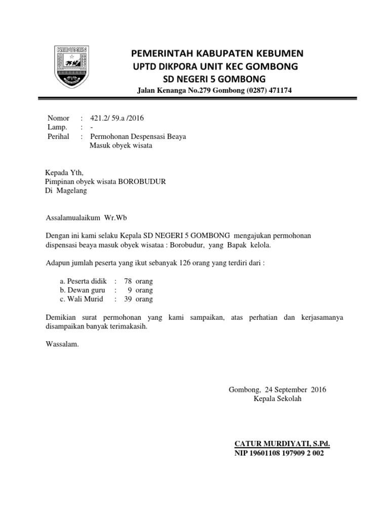 Contoh surat izin study tour. Contoh surat permohonan dispensai tiket wisata dan pemberitahuandocx. 3 jenis surat sponsor untuk aplikasi visa dan contohnya. Contoh surat pemberitahuan ini dapat diaplikasikan untuk smasmksmpsd atau bahkan pondok pesantren. 13 contoh surat pemberitahuan kepada orangtua murid. Contoh surat rekomendasi kegiatan sekolah perihal study tour wisata siapa yang tak pernah mengikuti kegiatan sekolah terutama kegiatan wisata atau study tour. Mohon dispensasi mengikuti study tourpklt.