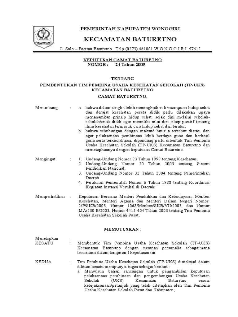 Berdasarkan pada pengamatan kami tentang prestasi dan kinerja saudara dari awal pekerjaan sampai batas waktu terakhir maka pt. Adapun struktur kepengurusan tim pelaksana inovasi desa di tingkat kecamatan terdiri dari atas 7 orang. Daftar surat keputusan camat ampenan no tahun tentang keterangan 1 2014 pengankatan tenaga kontrak penjaga malam kecamatan ampenan. Contoh dan cara membuat surat keputusan sk atau surat keputusan merupakan salah satu surat yang penting dalam sebuah lembaga atau organisasi untuk melegalkan setiap keputusan yang diambil oleh pimnpinan lembaga atau organisasi tersebut. Surat keputusan diperlukan bilamana seorang pemimpin atau atasan membuat keputusan di suatu pihak atau kelompok. Tim pelaksana inovasi desa di tingkat kecamatan dikukuhkan oleh camat melalui surat keputusan camat.