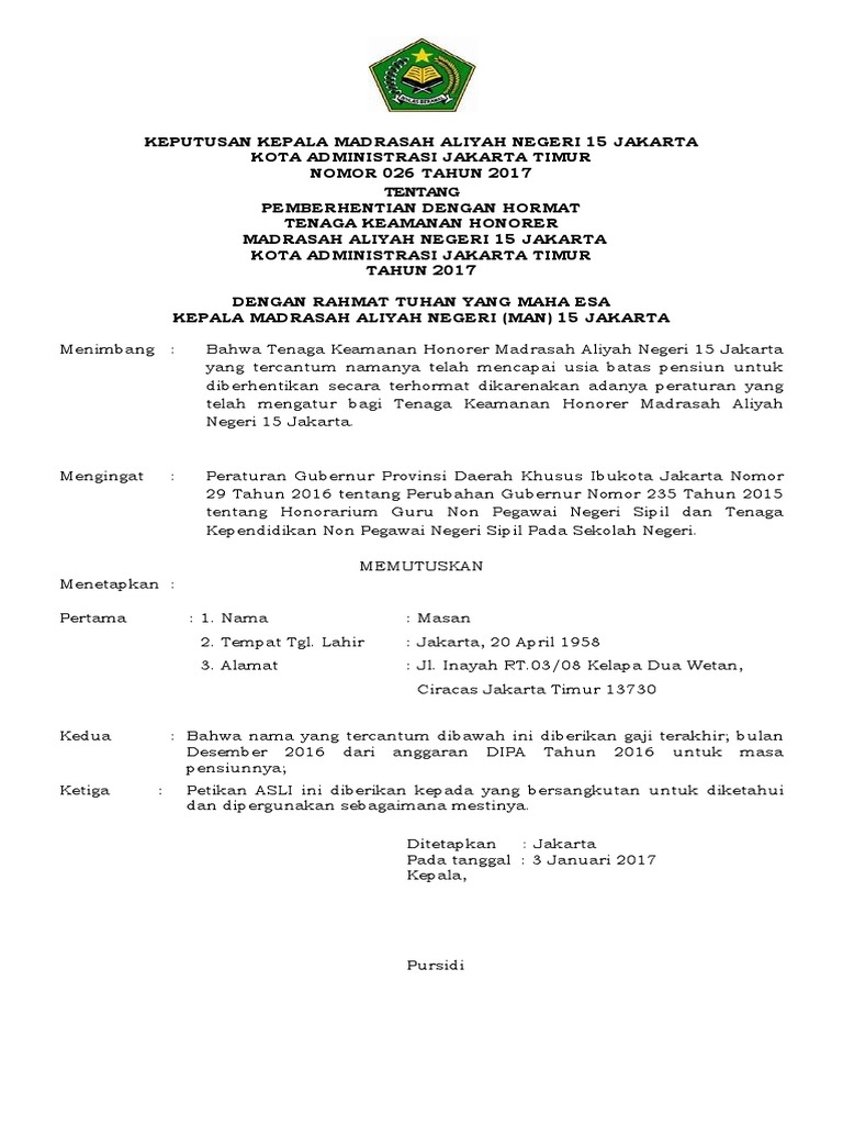 Contoh surat keputusan pensiun karyawan swasta artikel mengenai lowongan kerja yang sedang anda cari saat ini adalah mengenai contoh surat keputusan pensiun karyawan swasta. Surat permohonan permintaan pensiun terbaru dibuat oleh guru pns yang telah habis atau selesai masa baktinya tarpaut batas usia penuh. Contoh surat pemberhentian kerja pemutusan hubungan kerja phk diberikan kepada karyawan karena berbagai alasan. Contoh surat lengkap surat ijin surat lamaran kerja perintah resmi permohonan keterangan undangan dinas niaga jalan dukungan pengantar. Contoh surat keputusan pensiun karyawan swasta artikel mengenai lowongan kerja yang sedang anda cari saat ini adalah mengenai contoh surat keputusan pensiun karyawan swasta. Beberapa alasan paling umum untuk pemecatan adalah bagi karyawan untuk diketahui telah melakukan kesalahan fatal atau ancaman yang dapat mengancam nama baik atau masa depan perusahaan.