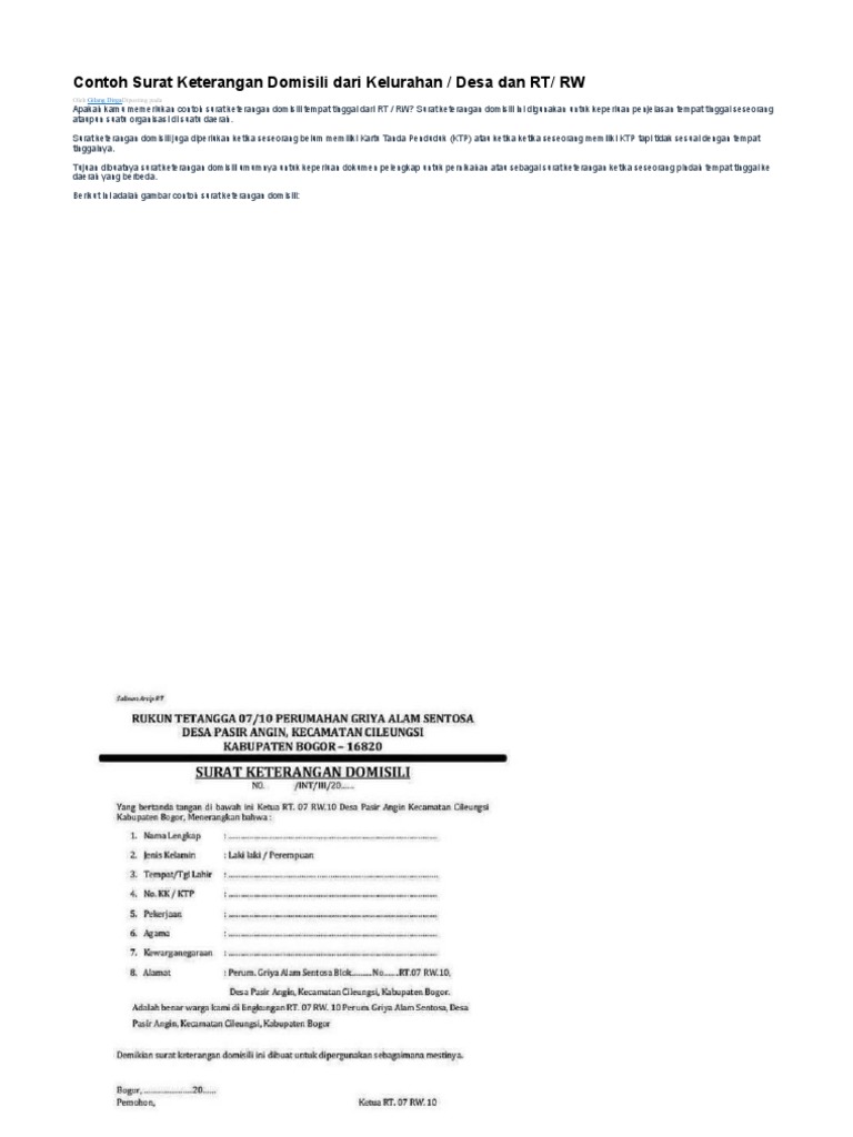 Contoh surat keterangan domisili tempat tinggal dari rt bagi warga pendatang yang belum memiliki ktp setempat sebaiknya memiliki surat keterangan domisili sementara dari rt. Surat keterangan domisili ini biasanya dikeluarkan oleh pihak kelurahan mulai dari pejabat terendah yaitu rt hingga kepala desa.