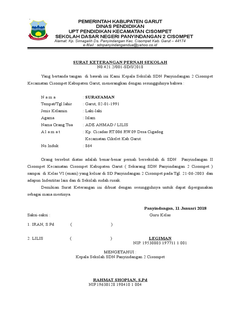 Namun untuk urusan komunikasi perusahaan maupun berbagai lembaga maupun instansi pemerintah penggunaan surat masih merupakan sesuatu hal yang wajib untuk dilakoni. Contoh surat keterangan pernah sekolah posted by ahmad yusup pendidikan tuesday march 29 2016 kop sekolah.