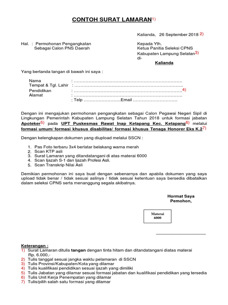 Terima kasih telah berkunjung semoga dapat bermanfaat untuk kita semua. Surat lamaran berisikan permohonan agar dapat mengikuti seleksi penerimaan calon pegawai negeri sipil di pemerintah daerah kabupatenkota yang ada di provinsi lampung tahun anggaran 2019.
