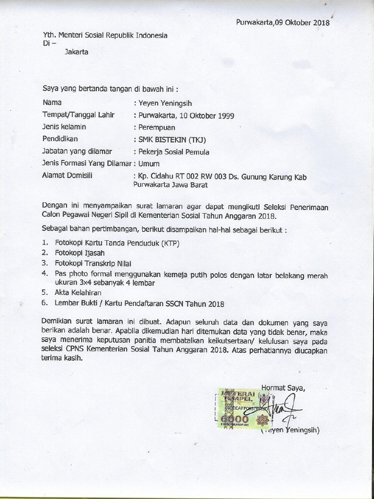 Contoh surat lamaran kementerian sosial. Download surat pernyataan untuk seluruh pelamar cpns kemensos 2018 format surat pernyataan seleksi cpns kemensos 2018. Jakarta 6 agustus 2020 direktur rehabilitasi sosial tuna sosial dan korban perdagangan orang kementerian sosial kemensos ri waskito budi utomo hadiri audensi kemensos dengan perwakilan aids healthcare foundation ahf asia salah satu mitra kerja non pemerintah kemensos dalam rehabilitasi sosial orang dengan hiv dan aids. Para karyawan perusahaan asuransi harus orang islam 6. Adapun bentuk formatnya ialah sebagai berikut. Contoh surat lamaran cpns kementerian sosial tahun 2017 contoh surat lamaran tepat di tanggal 1 agustus 2017 pendaftaran cpns telah dimulai. Nah oleh sebab itu jika anda saat ini sedang mencari format contoh surat lamaran cpns kementerian sosial 2018 silahkah simak terus halaman ini sampai selesai.