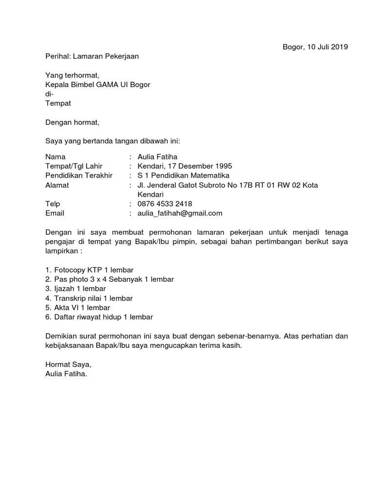 Contoh surat lamaran kerja di bimbel. The collection that comprising chosen picture and the best among others. Contoh surat lamaran kerja guru pilihan menjadi guru bagi sebagian orang terutama bagi mereka lulusan perguruan tinggi tentulah menjadi idaman dan kebanggaan tersendiri. Kumpulan contoh surat izin usaha bimbel yang benar 2019. Contoh surat izin usaha bimbel have a graphic associated with the othercontoh surat izin usaha bimbel it also will include a picture of a sort that could be observed in the gallery of contoh surat izin usaha bimbel. Ikut andil dalam mencerdaskan anak bangsa menjadikan mereka rela untuk menuntut ilmu dengan keras untuk kemudian rela menjadi pahlawan tanpa tanda jasa untuk kesejahteraan negara. Contoh surat lamaran kerja guru bimbel bimbingan belajar atau bimbel nampaknya sudah sangat populer sekali di indonesia terbukti saat ini sudah ada banyak sekali ratusan lembaga bimbingan belajar di indonesia terutama di kota kota besar seperti jakarta jogja surabaya dan juga di kota kota lainnya hal ini tentu sangat berdampak positif sebab selain membantu mencerdaskan bangsa juga.