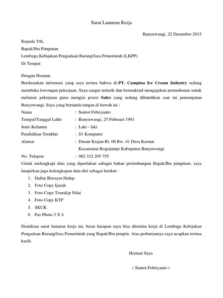 15 contoh surat lamaran kerja berdasarkan iklan paling lengkap salah satu sumber informasi tentang lowongan pekerjaan adalah melalui iklan. Pengalaman kerja dan skill 7.