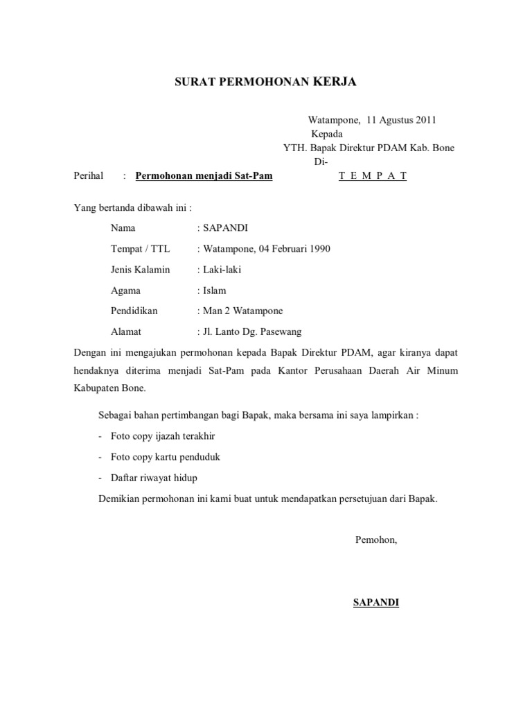 Contoh surat lamaran kerja pdam. Contoh surat lamaran kerja di perusahaan seringkali dicari oleh para pencari kerja yang ingin mengajukan lamaran pekerjaan di perusahaan perusahaan yang ada di indonesia. Contoh surat lamaran kerja yang baik dan benar sesuai dengan eyd ejaan yang disempurnakan untuk melamar pekerjaan di berbagai instansi baik bumn maupun swasta lengkap dengan filedoc siap untuk didownload dan diprint outcetak. Pada contoh surat lamaran kerja kasir di alfamart saya buat dari informasi lowongan kerja yang saya lihat di website loker berikut contoh surat lamaran kerja kasir di alfamart. Discover everything scribd has to offer including books and audiobooks from major publishers. Tetapi yang penting adalah kita mempunyai semangat kerja yang tanggu untuk bisa bekerja di tempat kerja anda yang inginkan. Contoh surat lamaran kerja berikut contoh surat lamaran pekerjaan yang bisa kamu download file dokumennya.