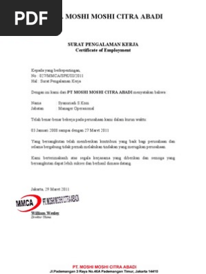 Bagi orang yang sudah bekerja surat paklaring tentu bukan hal yang baru lagi disadari atau tidak disadari karena banyak juga yang belum mengerti dan tahu apa itu surat paklaring. Salah satu fungsi dari surat pengalaman kerja ini misalnya sebagai dokumen penunjang ketika seseorang melamar kerja di perusahaan lain. Itu tadi merupakan contoh surat lamaran kerja yang bisa anda gunakan untuk membuat surat lamaran kerja dengan cara tulis tangan maupun dengan ketik komputer. Contoh surat keterangan kerja surat keterangan kerja di gunakan oleh karyawan atau seseorang yang memiliki ikatan kerja untuk memberikan penjelasan atau informasi bahwasanya kita adalah sebagai pekerja dan sedang bekerja dengan ini kita akan mendapatkan sebuah konfirmasi baik terhadap orang yang bersangkutan dengan kita. Untuk mendownload surat rekomendasi beformat doc silahkan. Contoh surat pengalaman kerja yang baik dan benar doc adalah surat yang dibuat oleh bagian kepegawaian perusahaan.
