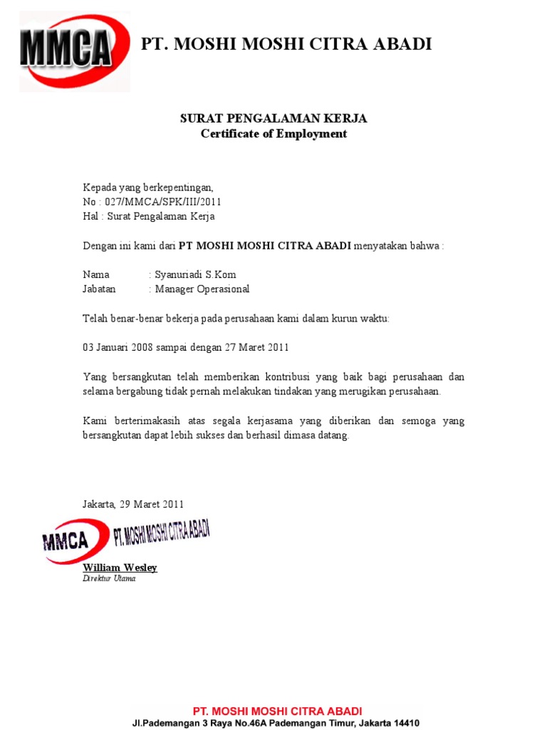 Contoh surat pengalaman kerja referensi paklaring rekomendasi merupakan surat yang dikeluarkan oleh bagian kepegawaian perusahaan. Cukup sekian dan terima kasih banyak.