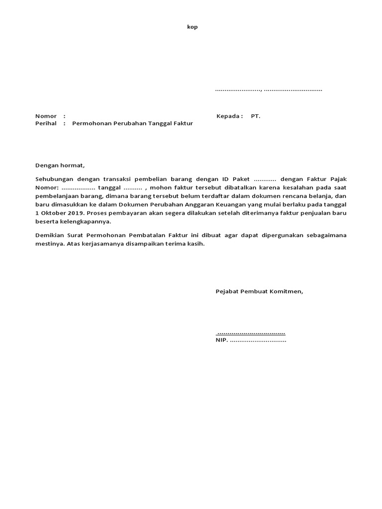 Contoh surat pembatalan faktur pajak. Buat anda yang penasaran mari simak ulasan di bawah ini. Saya menerbitkan faktur pajak pada masa juli 2016 dan belum lapor serta bayar dan pihak lawan traksaksi meminta pembatalan faktur pajak dikarenakan barang yang dibeli tidak diterimaapakah saya harus menerbitkan surat pembatalan faktur pajak dari kpp. Uu nomor 42 tahun 2009 tentang perubahan ketiga atas uu nomor 8 tahun 1983 tentang ppn barang dan jasa dan ppnbm berlaku tahun 2010. 5 contoh surat pembatalan faktur pajak word terbaru myjourney untitled faktur pajak batal pengganti dan dokumen yang disamakan faktur pajak doc formulir yang dapat dipergunakan pkp sesuai per 24pj2012 a contoh format surat pernyataan mengenai keberadaan tempat untuk nomor. Surat pembatalan faktur pajak. Apakah tertulis seperti misalnya.