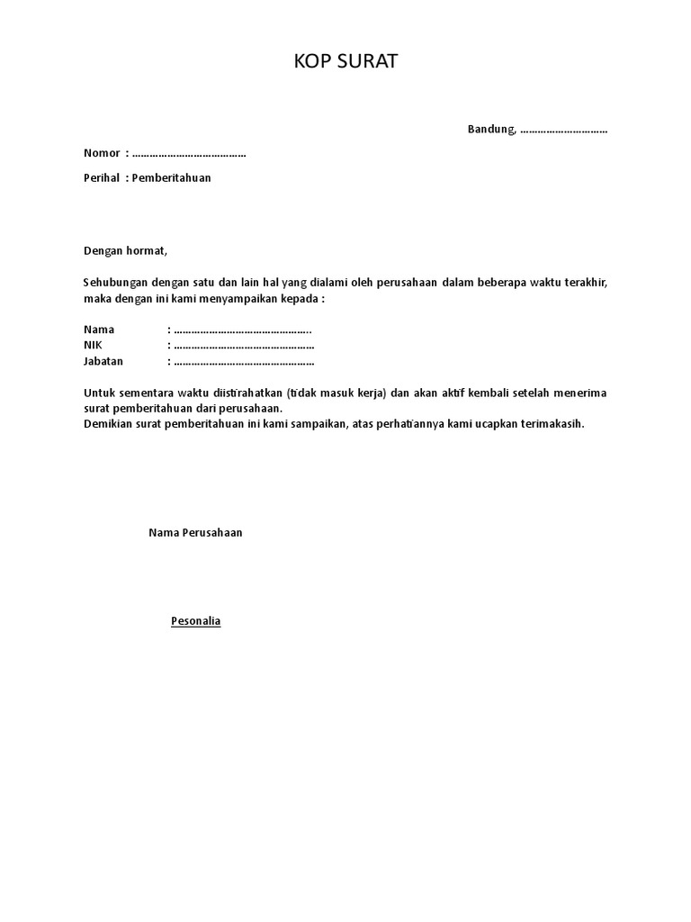 Kami seluruh karyawan atas adanya waktu jam kerja pada setiap hari ke 6 sesuai pasal 78 ayat 2. Ke disnaker itu untuk melaporkan surat berhenti kita jadi sebelum ke disnaker kita minta dibuatin perusahaan surat berhenti yang isinya pemberitahuan ke disnaker bahwa kita sudah berhenti bekerja. Dan untuk lebih memperlancar jalannya kegiatan maka biasanya dibuatlah surat. Admin dari blog bagi contoh surat 2019 juga mengumpulkan gambar gambar lainnya terkait surat pemberitahuan dari perusahaan ke disnaker tembusan bpjs ketenagakerjaan dibawah ini. Bahwa pada tanggal 05 november 2014 saya kembali menerima surat dari klinik medilab no. Untuk data yang diperlukan supaya prosesnya legal maka tanggal berhenti bekerja yang ada di surat paklaring harus sama dengan yang tertera di dokumen kantor bpjs ketenagakerjaan.