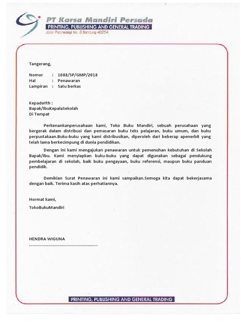 Contoh surat penawaran buku. Adapun jenis surat yang seringkali digunakan oleh perusahaan adalah jenis jenis surat niaga. Soal revisi sd smp sma. 07282018 07282018 ilmiyatin leave a comment. 15 contoh surat permintaan penawaran barang dan jasa bagi sebuah perusahaan penggunaan surat sebagai media komunikasi merupakan hal yang wajib untuk dilakukan. Contoh surat penawaran buku k13 smk berikut ini adalah kisi kisi soal pretest ppg 2018 yang merupakan kumpulan file dari berbagi sumber kisi kisippg tentang contoh surat penawaran buku k13 smk yang bisa bapakibu gunakan dan diunduh secara gratis dengan menekan tombol download biru dibawah ini. Surat niaga penawaran juga biasa disebut sebagai surat dagangn atau surat bisnis.