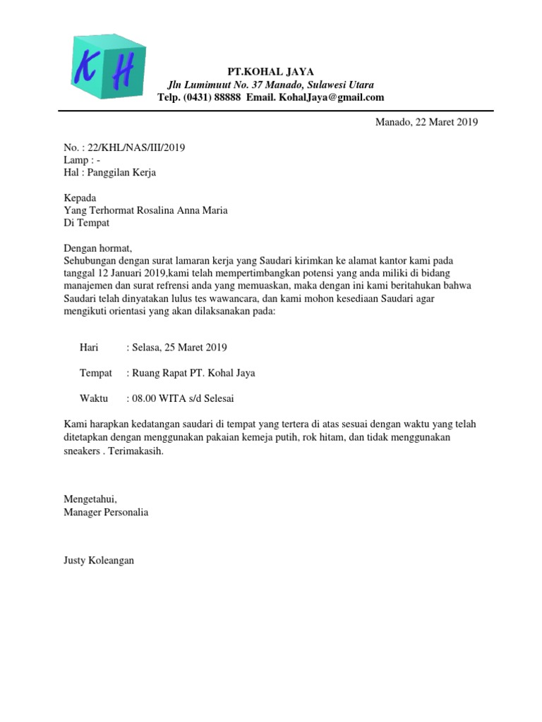 Contoh surat balasan penerimaan magangkerja praktik kop surat perusahaan yogyakarta 14 agustus 2012. Surat penerimaan kerja untuk pegawai yang akan baru masuk bekerja di suatu perusahaan. Dan yang akan admin bahas diwaktu sekarang ini yaitu contoh surat penerimaan pesanan. Surat pengumuman ini biasanya akan kita temui di lembaga pendidikan perusahaan instansi pemerintahan maupun organisasi. Agar seluruh masyarakat tahu mengenai informasi lowongan yang tersedia di perusahaan. Untuk itu haruslah anda buat iklan lowowngan kerja bagi perusahaan atau pengumuman penerimaan karyawan pegawai bagi instansi atau.