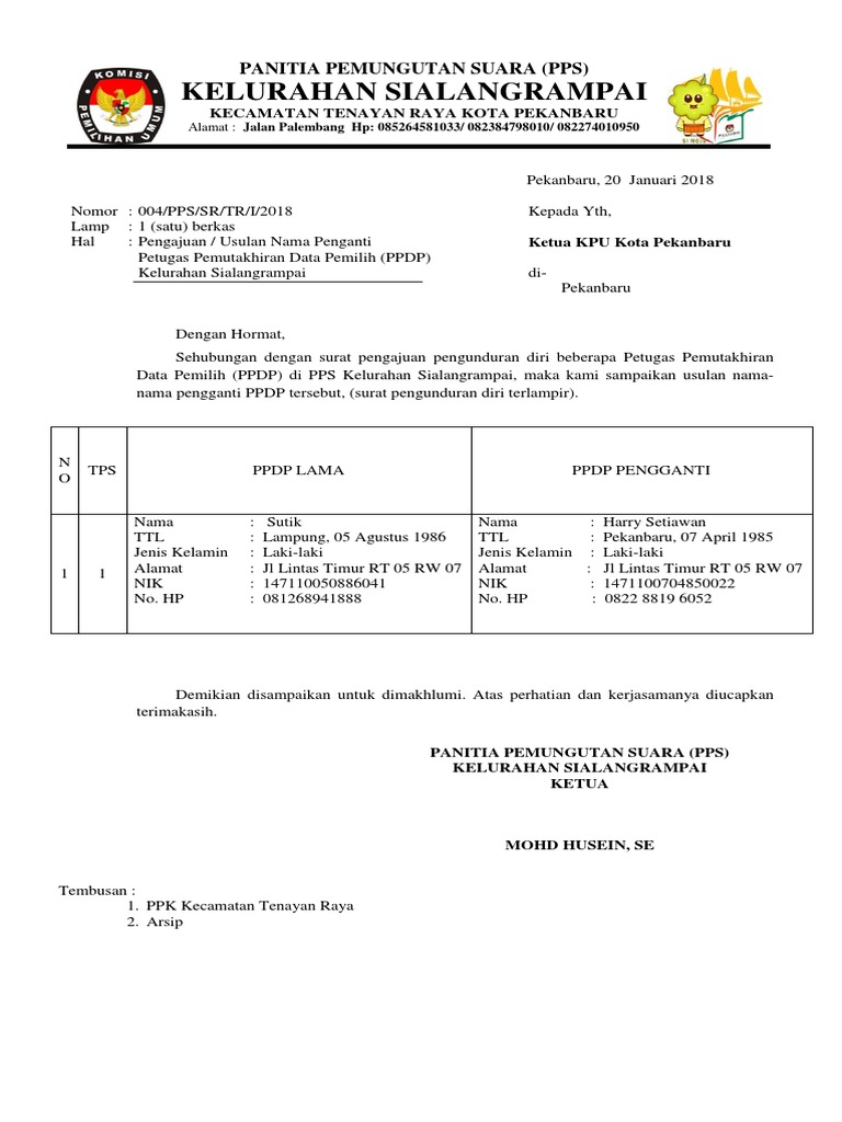 Contoh surat pengunduran diri panitia pemungutan suara. Kulon progo 28 september 2017. Memang tidak ada bentuk baku surat pengunduran diri tapi secara garis besar surat tersebut berisi alasan pengunduran diri dan ucapan terima kasih atas kesempatan yang sudah diberikan oleh perusahaan. Contoh surat pengunduran diri doc. Pembangunan rt05rw08 bantul yogyakarta. Oke cekidot seperti apa suratnya ini dia. Contoh surat pernyataan pengunduran diri anggota ppspanitia pemungutan suara menjelang pemilu atau pemilihan umum tentu akan dibentuk kepanitiaan pemungutan suara di setiap tpstempat pemungutan suara masing masing.