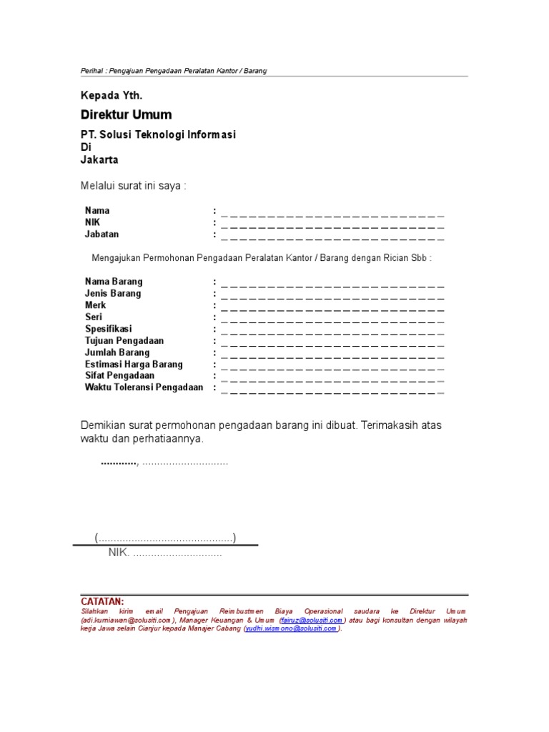 Contoh Surat Permohonan Pengadaan Barang Dan Jasa Bagi
