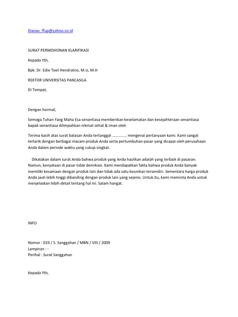 15 contoh surat pernyataan paling lengkap untuk berbagai kebutuhan belakangan ini penggunaan surat memang bisa dibilang sudah semakin minim terlebih untuk urusan pribadi. Contoh surat permohonan dalam kehidupan sehari hari sering kali kita dihadapkan dengan suatu situasi yang tidak dapat dikerjakan dengan sendiri dan harus memerlukan bantuan pertolongan dari orang lainagar permohonan tersebut dikabulkan maka kita harus membuat sebuah surat permohonan yang ditujukan kepada pihak yang bersangkutan. Bagaimana pula dengan contoh surat klarifikasi pajak. Pencarian informasi secara formal selalu membutuhkan surat resmi. Contoh surat penjelasan atas dugaan penyimpangan p. Contoh surat permohonan klarifikasi didalam bisnis kita pasti akan sering disibukkan dalam hal pencarian informasi.