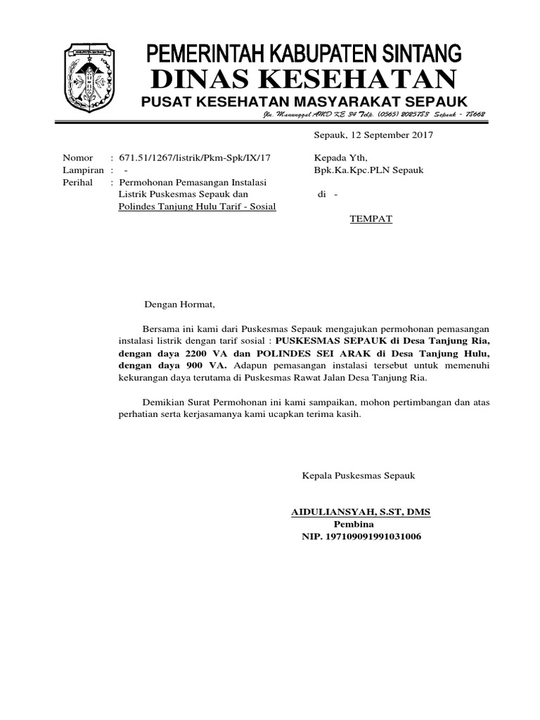 Contoh surat permohonan pemasangan listrik pln pasang baru posted by blogger with no comments. Contoh surat perihal permohonan pemasangan baru instalasi listrik untuk sekolah listrik merupakan kebutuhan yang pokok dalam kehidupan sehari hari termasuk untuk sekolah listrik sangatlah diperlukan sekali karena listrik merupakan sesuatu yang harus ada untuk setiap satuan pendidikan tanpa ada listrik disuatu sekolah maka pembelajaran tidak akan berjalan dengan maksimal.