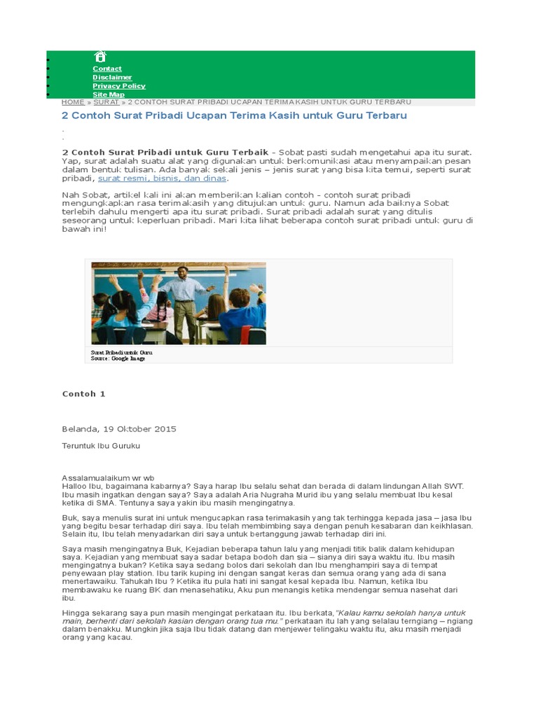 Contoh surat pribadi ucapan terima kasih. Contoh surat pribadi untuk guru dan ucapan terimakasih. Surat ucapan terima kasih ini tidak hanya dapat dibuat atas nama pribadi namun juga dapat mengatasnamakan sebuah kelompok instansi atau bahkan sebuah perusahaan. Jika anda sudah memiliki pekerjaan yang bagus sekaran ini maka janganlah lupakan guru guru anda yang dulu sudah bersusah payah untuk mendidik dan mengajari anda. Surat ucapan terima kasih ini tidak hanya dapat dibuat atas nama pribadi namun juga dapat mengatasnamakan sebuah kelompok instansi atau bahkan sebuah perusahaan. Surat pribadi untuk orang tua ini sebenarnya tidak jauh berbeda dengan surat pribadi lainnya. Berikut ini adalah contoh surat dalam bahasa inggris yang.