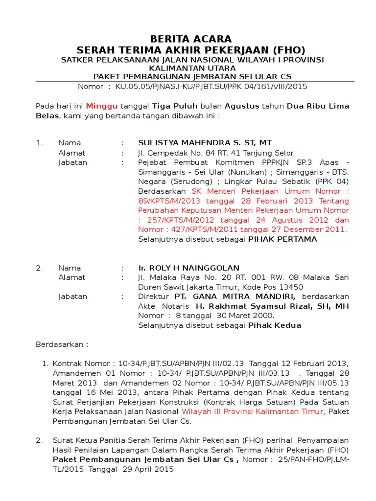 Contoh surat serah terima pekerjaan proyek. Contoh surat berita acara serah terima pekerjaan lengkap yang mencakup beberapa jenis pekerjaan termasuk serah terima barang pembayaran dan pemeriksaan barang. Contoh surat berita acara serah terima merupakan jenis surat berita acara serah terima hai kali ini situs surat dan lowongan kerja by sista nafi akan berbagi informasi mengenai surat lagi. Berikut informasi sepenuhnya tentang contoh berita acara serah terima pekerjaan proyek doc. Surat ketua panitia serah terima pekerjaan proyek. Berita acara adalah dokumen yang menerangkan secara detil kronologis rangkaian kegiatan atau peristiwa yang terjadi dan dapat digukanan sebagai landasan untuk proses hukum selanjutnya bila diperlukan. Pasal buku 2 syarat syarat umum kontrak tentang berita acara serah terima sementara pekerjaan.