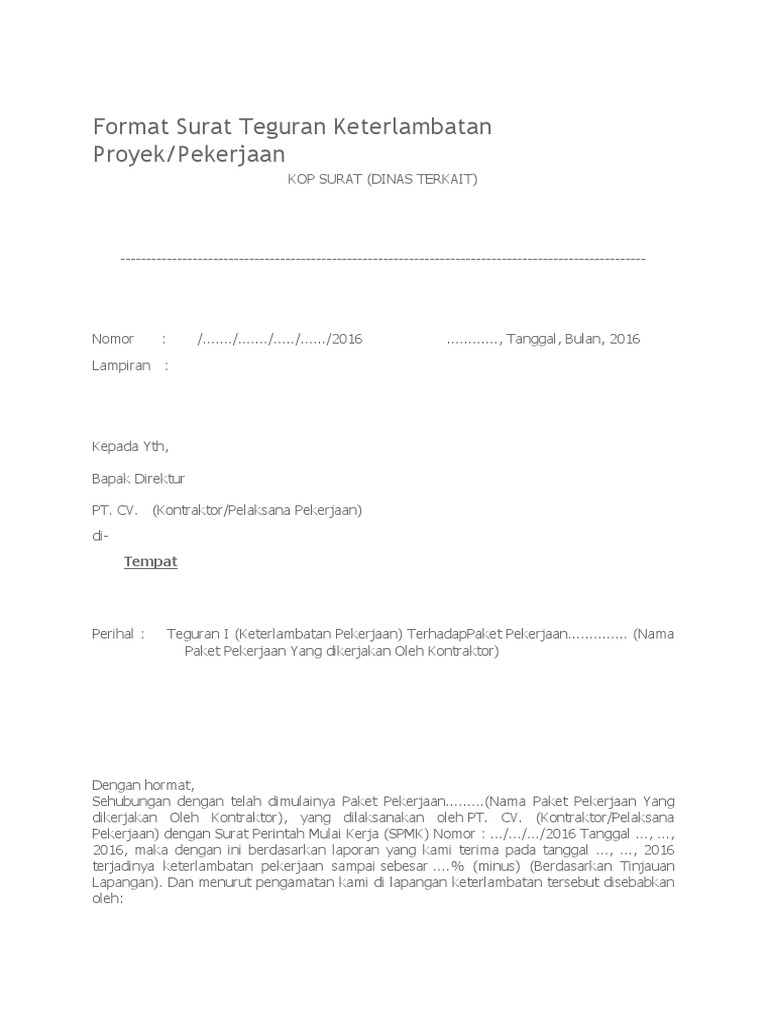 Contoh surat teguran keterlambatan pekerjaan. Namun terlebih dahulu apabila anda sebagai kontraktor atau ppk maka perhatikan hal hal berikut ini. Bukan hanya berkirim surat melalui e mail kita bisa juga berkirim pesan singkat berkirim video berkirim file sampai bertatap muka melalui internet dan media sosial. Surat peringatan atau bisa juga disebut dengan surat teguran ini biasanya dikeluarkan setelah adanya peringatan secara lisan. Contoh surat teguran menjalani sebuah profesi memang membutuhkan suatu konsistensi komitmen serta kontinuitas. Home format proyek surat format surat teguran keterlambatan proyekpekerjaan format surat teguran keterlambatan proyekpekerjaan by khairul amna 082800 1 comment. Contoh surat teguran kecanggihan teknologi sekarang ini memang sudah semakin canggih dan semua komunikasi bisa dilakukan melalui internet.