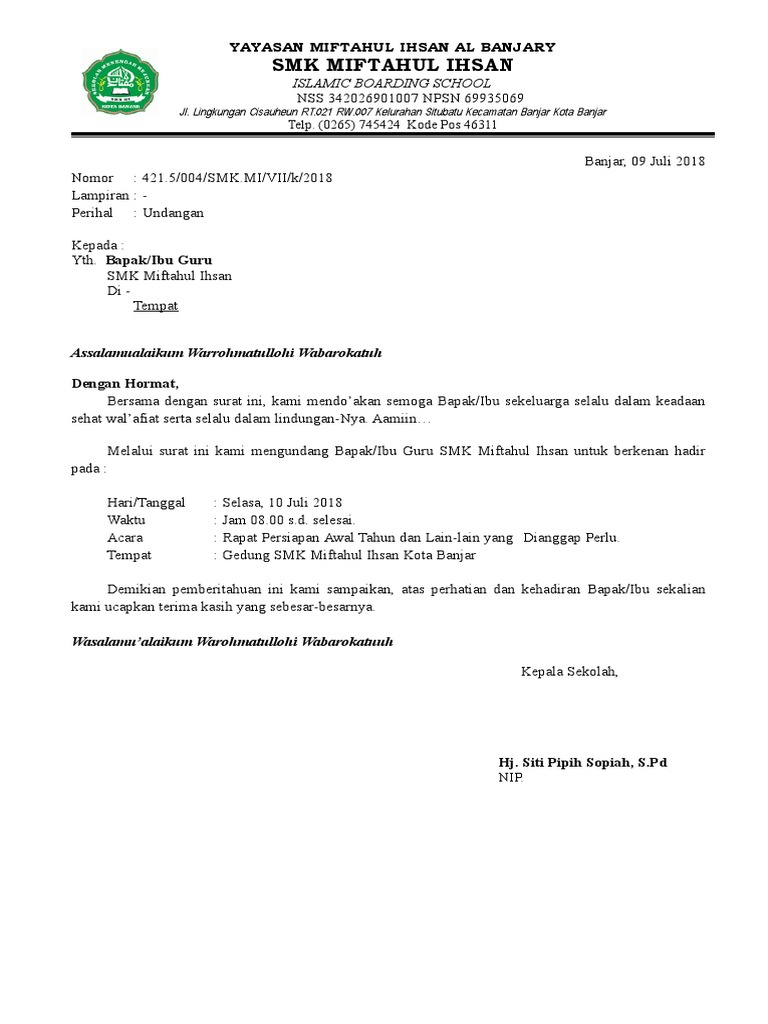 Yang terhormat bapakibu wali murid kelas vii smp n 1 ronggo di tempat dengan hormat berdasarkan hasil rapat orang tua wali pada tanggal 10 januari 2018 yang lalu smp n 1 ronggo tahun ajaran 20172018 akan mengadakan acara study tour yang wajib diikuti oleh seluruh siswa kelas vii. Contoh surat undangan orang tua wali muridsurat merupakan dokumen penting yang harus diarsipkan oleh setiap sekolah. Dan untuk contoh ini kita ambil saja kepala sekolah yang ingin mengundang para guru untuk menghadiri rapat dan menggunakan surat resmi undangan. Berikut ini surat undangan pengambilan raport untuk wali murid. Dalam pelaksanaan suatu kegiatan rapat kita tidak bisa begitu saja mengadakannya tanpa suatu pemberitahuan terlebih dahulu. Surat undangan dapat berupa surat resmi maupun tidak resmi.